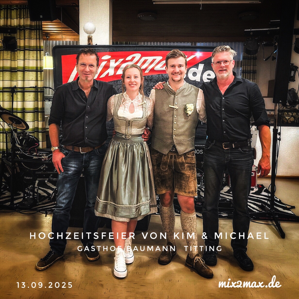 Nach der Hochzeitsfeier von Kim & Michael. Gestern. Beim Baumann in Titting. Danke für das Foto Kim & Michael und dass wir bei eurem herrlichen Fest im Wortsinn dabei sein durften! Danke allen Gästen, für diese krass tolle Party, für‘s Tanzen, Feiern und für euren Applaus! Danke auch an das Team vom Gasthof Baumann, für den tollen Service und die gute Zusammenarbeit! Euch und euch allen die ihr uns lest und folgt wünschen wir noch einen schönen Sonntag Abend! Man sieht sich!...